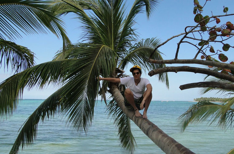 Em outra foto, Luan aparece fazendo pose em cima de um coqueiro. "Tá, eu segurei a folha do coqueiro para não cair", escreveu no microblog.
